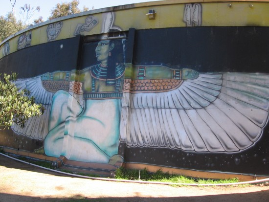 Ancient Egypt and its symbols inspire much of the vibrant mural.