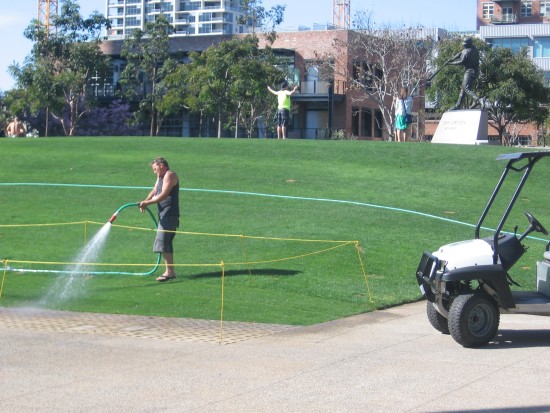 A variety of workers were out on Sunday afternoon preparing Petco Park for Padres opening day, which is less than two weeks away. I got a few pics of the action…