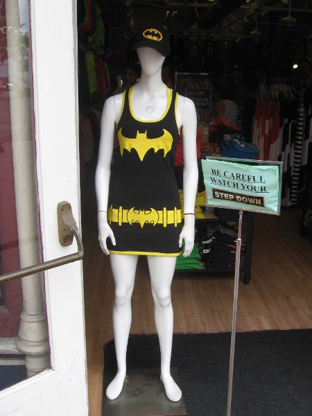 Two weeks to go until this year’s San Diego Comic-Con! During my walk downtown today I saw that a few shops, bars and restaurants in the Gaslamp Quarter have begun to get ready. A couple signs are up and a few windows are painted. Horton Plaza shops have many wares ready to sell. I suspect in the coming week, major preparations will seriously get underway. I’m looking forward to see what surprises pop up!