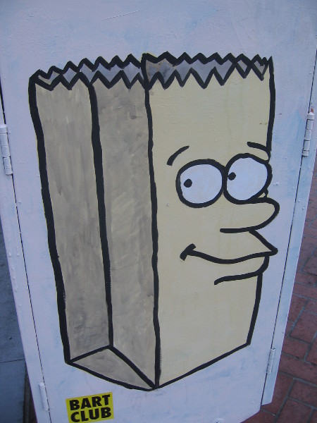 At the corner of Eighth Avenue and G Street in downtown San Diego you’ll find the Bart Club. At this location, three utility boxes have been painted with whimsical versions of Bart Simpson’s iconic television cartoon face!