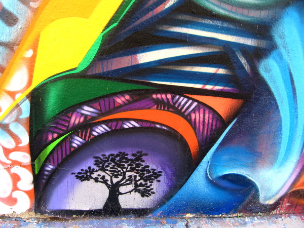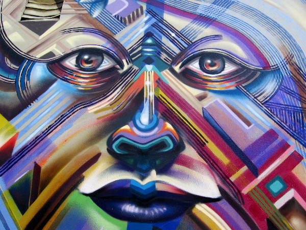 A little online research reveals that Ancestors replaced another damaged mural on the same wall, which was titled Synergy. Maxx Moses likes to use spontaneity in his creative productions, and calls his unique art movement Concrete Alchemy. Isaias Crow’s artwork, which I believe is on the right side of the mural, is similarly awesome!