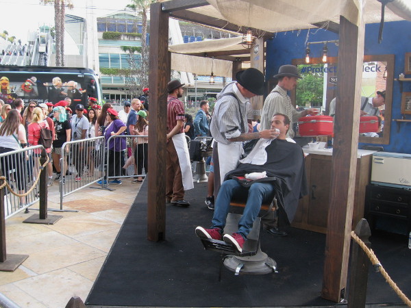 Here’s a bunch of fun photos showing activity outside the convention center during 2015 San Diego Comic-Con. There’s so much to see, to absorb, one could happily spend hours just walking around. Most of these pics are from this evening–Thursday. A few are from Wednesday.