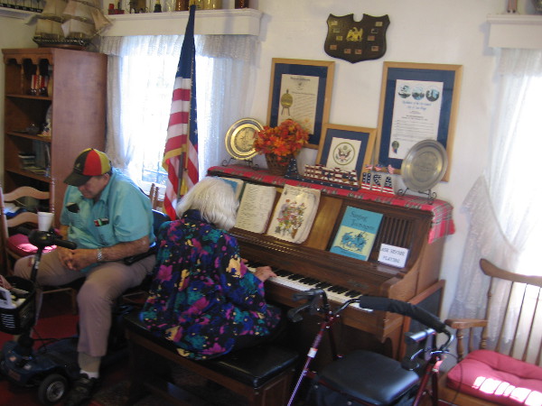 Playing the piano for anyone who wanders in on another perfect sunny San Diego day. Someone was whistling nearby.