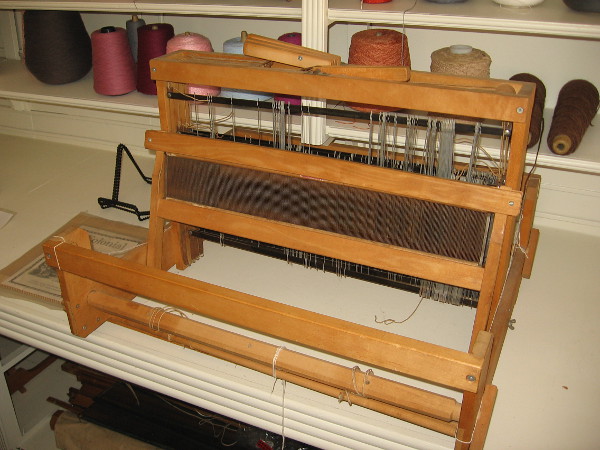 Should you visit San Diego’s Old Town, look for this sign outside the Threads of the Past living history activity center.Shelves full of colorful fabric woven with geometric patterns.Two quilts on one wall greet visitors as they enter Threads of the Past. On the left is a modern version of the 1850s Juana Machado Quilt.According to family lore, this applique quilt was made by Juana Machado in the 1850s. Juana was born in 1814 to a soldier of the San Diego Presidio and his wife.Threads of the Past contains several small looms and a variety of educational displays.Some colorful fabric circles arranged on a table.As you can see, this Inkle Loom is quite narrow. It’s used to make woven bands for belts and straps.A rather simple wood Colonial Loom on display in Threads of the Past.One display explains shearing sheep for wool, then carding, combing, and spinning wool.Several hand carders. Carding is gently spreading washed and dried wool in preparation for future processing, like spinning.All sorts of very colorful threads!A living demonstration of an old-fashioned hand loom at Threads of the Past, in Old Town San Diego State Historic Park.