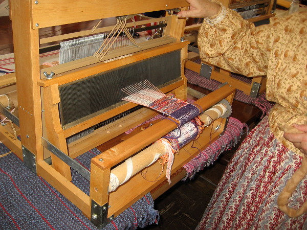 I recently visited Threads of the Past, a living history exhibition in Old Town San Diego State Historic Park. Not only did I see a number of beautiful quilts, but I learned about spinning and weaving. I was even able to watch a skilled artisan work an old-fashioned loom!