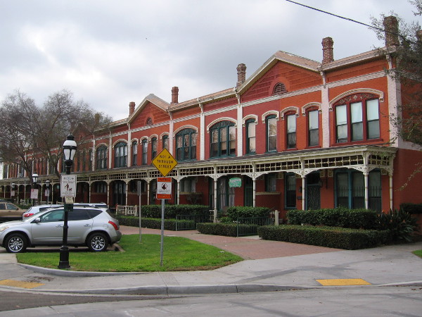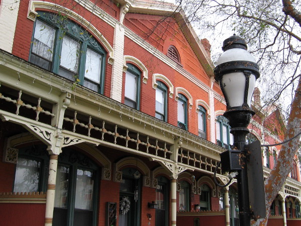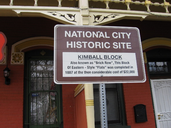 To accommodate executives of the Santa Fe Railroad and booming times caused by the arrival of rail, in 1887 Frank Kimball built Brick Row, a structure in the style of Philadelphia row house. It was designed by San Diego architect R. C. Ball. Over 240,000 bricks were used for the ten units.