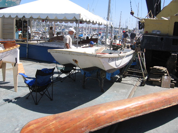 Inside the Koehler Kraft building are several more wooden boats. The big one being worked on is Siwash, a 1910 yawl that held the round Catalina time record for 27 years.