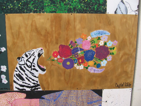 A new batch of public art has popped up in the breezeway between the Santa Fe Depot and Museum of Contemporary Art San Diego. I believe these pieces were all created by youth.