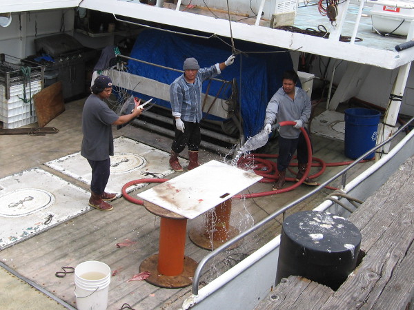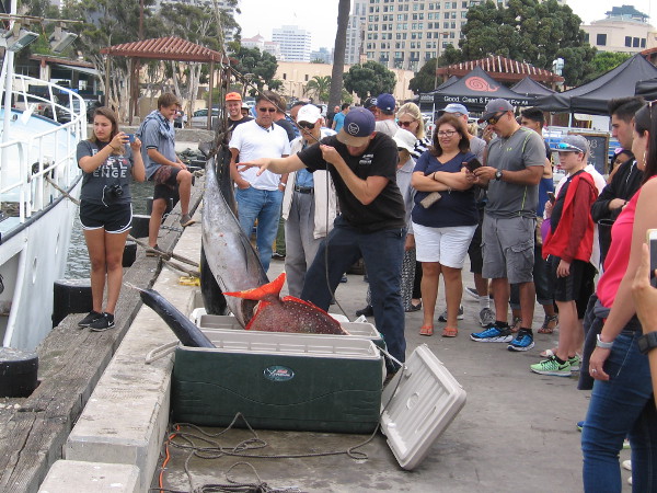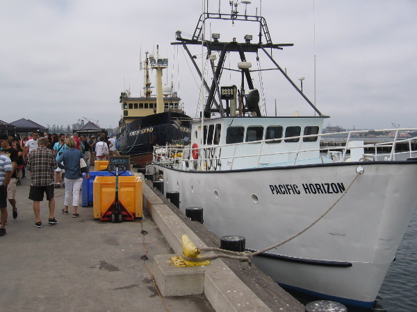Look what I happened upon during my walk this morning! The fishing vessel Pacific Horizon was unloading a huge catch of opah and bigeye tuna at the Tuna Harbor Dockside Market!