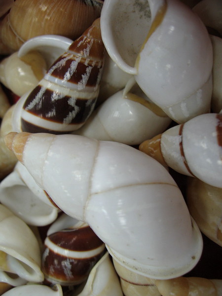 When I walk along a beach, I like to search the sand for bright or colorful objects washed up by the tide. But I honestly know next to nothing about shells from molluscs on land or in the sea. So I learned a few fascinating facts during my short conversations with a friendly hobbyist and a dealer.