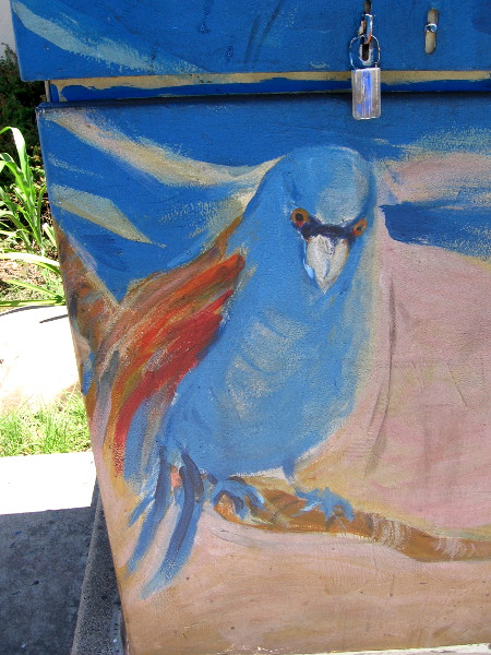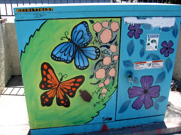 I found a lot of fun street art during a random walk around La Mesa. I bounced from color to color like a butterfly, my feet pointed in every direction. I wandered down University Avenue, up La Mesa Boulevard, along Spring Street. Most of the artwork was discovered on sidewalk electrical boxes. These photos are in no particular order.