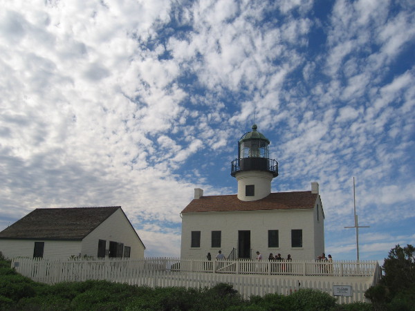 Looking at the iconic Old Point Loma Lighthouse and small museum beside it.