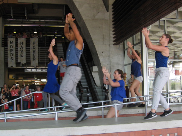 Trolley Dances is an annual event in San Diego that uses unusual public spaces as settings for dance. The inspired, provocative performances are produced and choreographed by the San Diego Dance Theater.