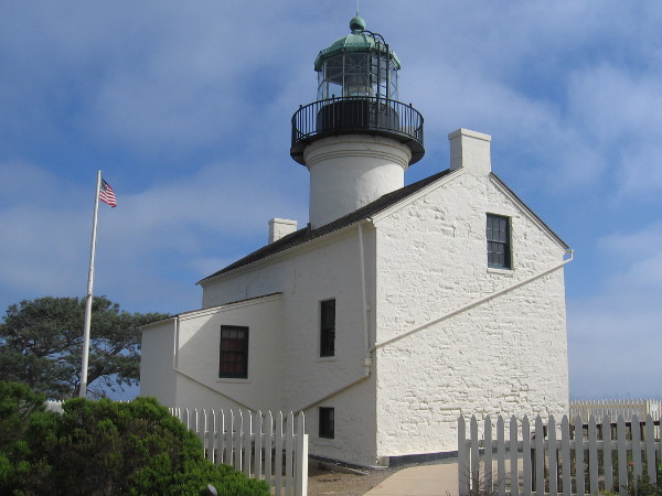 The beautiful Old Point Loma Lighthouse and the nearby Assistant Keepers Quarters building at Cabrillo National Monument.
