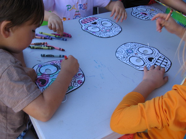 A lively crowd filled the park, roaming about in fun costumes, trick-or-treating, eating yummy food truck offerings, and enjoying all sorts of entertainment. But the coolest part of the event, in my opinion, was the opportunity to create all sorts of colorful Halloween art!