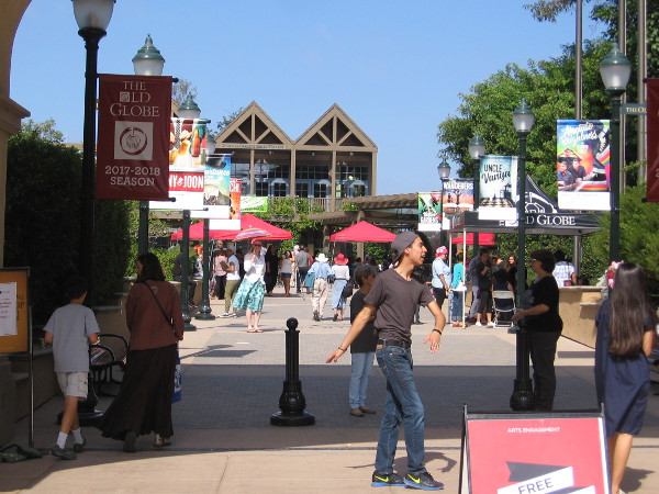 For several hours today, visitors to Balboa Park could enjoy traditional Dia de los Muertos activities in Copley Plaza, at the entrance to the Old Globe’s theater complex. The event’s main attraction was two performances of a powerful new play called La Muerte Descansa en Paz (Death Rests in Peace). The first performance was in Spanish, the second mostly in English.