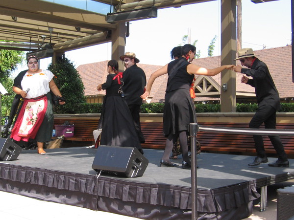 Day of the Dead–Dia de los Muertos–was celebrated today in Copley Plaza, outside the Conrad Prebys Theatre Center in Balboa Park.A Dia de los Muertos altar remembers and celebrates those who’ve passed into the next world. Their spirits are enticed to return among the living.A loving tribute to relatives and loved ones, dearly missed.Kids have their faces painted like sugar skulls for Dia de los Muertos.The tools of a face painter.At one table creative kids could color Dia de los Muertos skulls.Shakespeare among Dia de los Muertos skulls. Perhaps that one in the center belonged to Yorick.A performance of La Muerte Descansa en Paz (Death Rests in Peace) begins. The dead enter in front of a living audience.The character Death takes the stage. Death sees both sides of the river. Death sees life’s joy, pain, dreams–and the souls of the departed.The dead dance. On Dia de los Muertos, when the church bells ring, Death permits the dead to return briefly as spirits among the living.A dead poet vaguely remembers the richness and brevity of life–the sharp joys and sorrows. Her voice was cut short, but her living words linger.The dead briefly take the stage. We, the living, experience a glimpse, a whisper, a moment of lost love.
