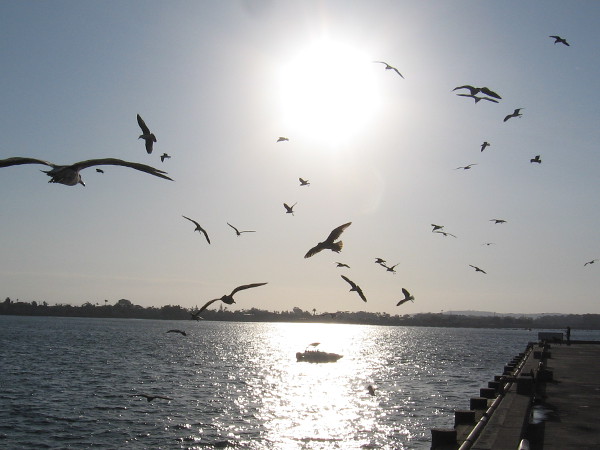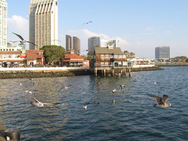 It seemed that hundreds of seagulls had gathered from every part of San Diego Bay. Patrolling the sky, they watched two sea lions feasting on discarded scraps from a nearby fishing vessel.