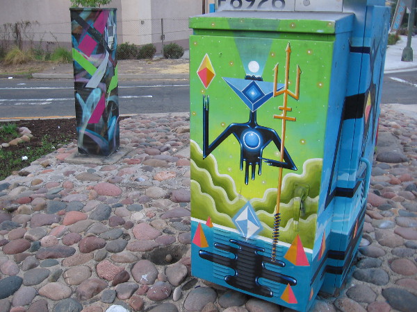 One side of an electrical box on University Avenue at Interstate 805. This particular art closely resembles other examples I once photographed in National City.