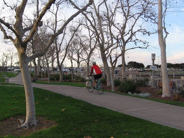 Another early morning walk downtown by San Diego Bay. We are experiencing a mild Santa Ana. So the air is dry. After a chilly night, the rising sun is bright and warm.