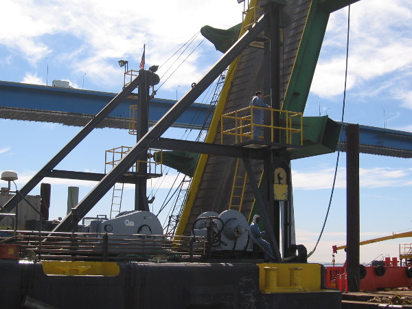 The modest Cesar Chavez Park pier is popular with fishermen and those who just want to venture out a short distance over the tranquil water. The Coronado Bay Bridge arches almost overhead. Docked immediately to the south are the interesting vessels and barges of Pacific Tugboat Service. Looking to the north, one can watch ships loading and unloading at the busy Tenth Avenue Marine Terminal.