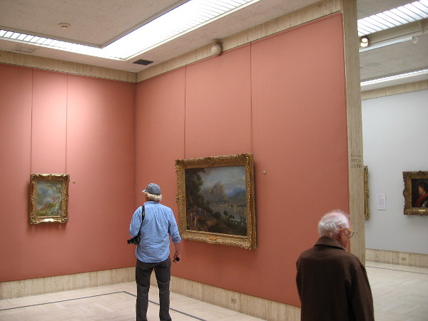 By taking a few steps into the museum’s intimate galleries, visitors can view one of the most amazing small collections of fine art in the world. There are 60 major works, paintings by the likes of Copley, Johnson, Bierstadt, Veronese, Guercino, Clouet, Claude, David, Brueghel, Rubens, van Dyck, Zurbarán and Murillo. The Timken owns the only Rembrandt to be found in Southern California. Every work is partially bathed in indirect natural light, from hidden skylights along the walls in each gallery. During our tour, as we gazed at the Rembrandt, a cloud passed over the sun, and the light in the gallery dimmed. It was an extraordinary experience that infused additional life into the moody masterpiece.