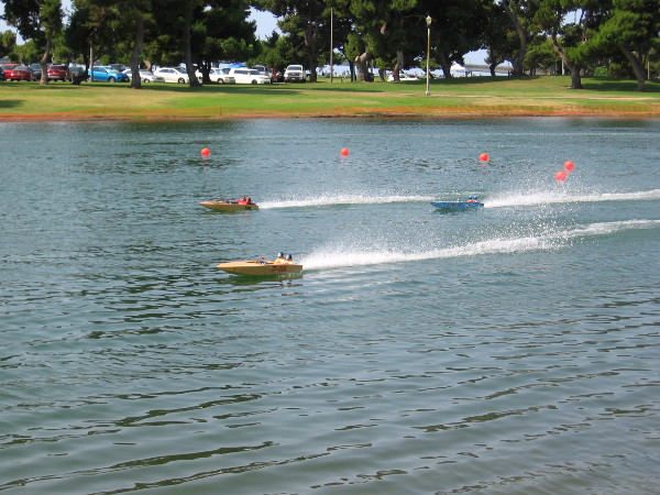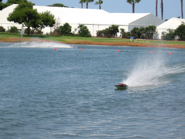 Today I headed over to Mission Bay’s large model yacht pond, located near the center of Vacation Isle Park, to watch gasoline-powered high speed RC boats race for the San Diego Cup!