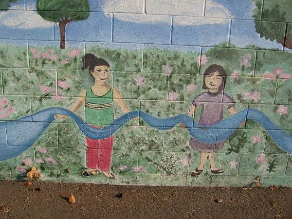 The beautifully painted artwork, depicting the San Diego River as a blue ribbon, has faded a little. Time is inexorable. But the message of unity and care has touched many.