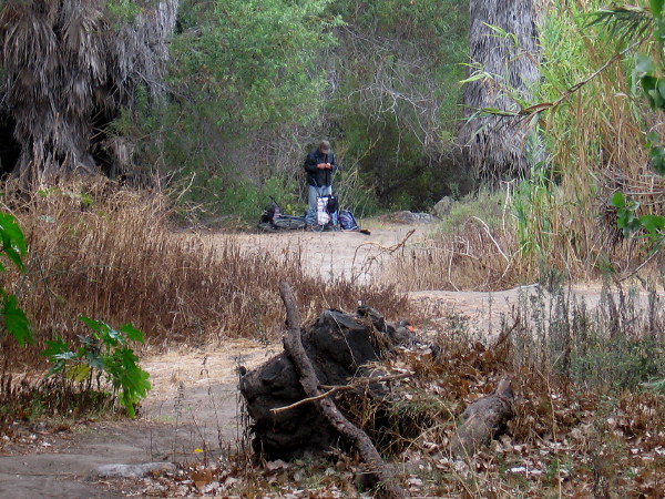 After the first dance ended, I followed the mobile audience as they were led west down the nearby San Diego River Trail to the next outdoor stage. Chairs were set up short of the place where Highway 163 crosses Mission Valley.