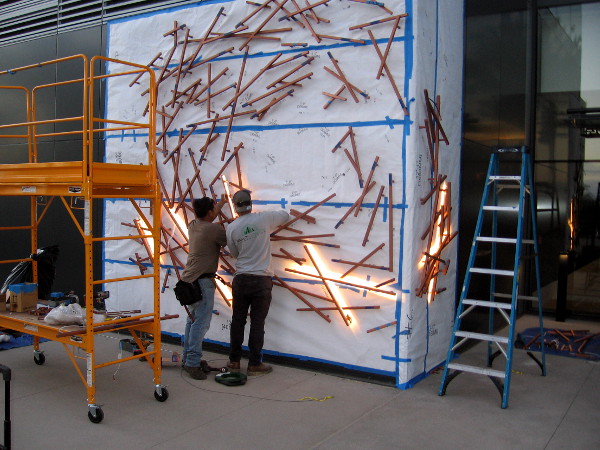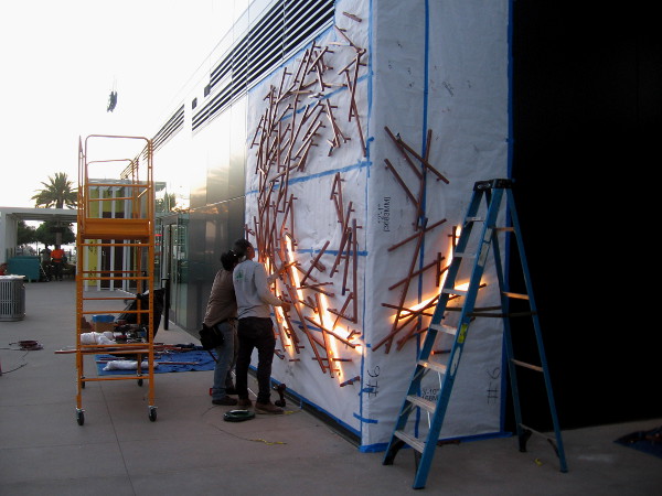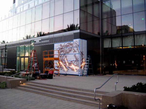 This evening I was walking along Broadway past the new, almost completed InterContinental San Diego when I noticed a couple of guys installing artwork near the waterfront luxury hotel’s entrance.