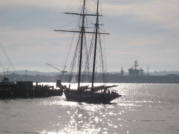 As I stood at the edge of San Diego Bay late Sunday afternoon, Californian returned across the water to its home at the Maritime Museum of San Diego.
