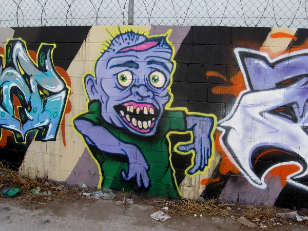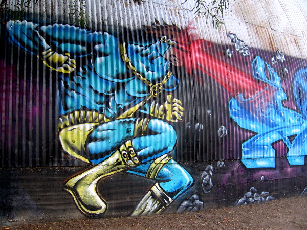 If the style of their work seems familiar, I blogged their Teenage Mutant Ninja Turtle mural (which has since been painted over) here and some of their other graffiti-style artwork here.