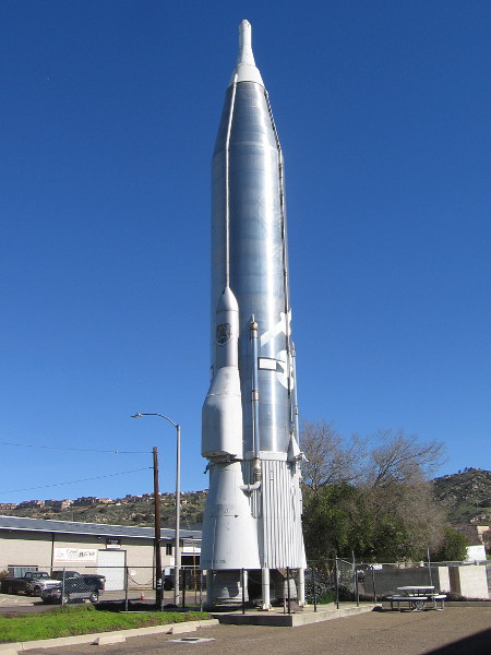 An imposing Atlas missile stands in one corner of the annex’s parking lot!Cockpit exhibits and aircraft in various stages of restoration stand outside the museum annex hangar.Inside the hangar there’s a ton of cool stuff, including many old exhibits from the main San Diego Air and Space Museum in Balboa Park.Replica of the Smithsonian’s original Vin Fiz Flyer dangles from the ceiling. This one-of-a-kind Wright Brothers airplane was the first aircraft to fly coast-to-coast. The journey took almost three months!Ryan X-13 experimental vertical take-off and landing (VTOL) jet created by the Ryan Aeronautical Company of San Diego. This particular aircraft was test flown in 1955 at Edwards Air Force Base.Looking past the Ryan X-13 Vertijet at other exhibits in the annex hangar, including a yellow Ryan Recruit military trainer.This particular Ryan X-13 was the result of a contract with the U.S. Air Force, as you can see by the markings.Ryan ST-3KR (PT-22) Recruit, an aircraft used to train thousands of pilots during World War II.In a glass display case nearby is a small model of a Ryan B-5 Brougham. (You might recall that Charles Lindbergh’s famous Spirit of St. Louis, first plane to cross the Atlantic Ocean solo nonstop, was built in San Diego by Ryan.)Numerous aircraft engines on display at the San Diego Air and Space Museum’s Gillespie Field Annex.Wright R-3350-B Duplex-Cyclone 1939 aircraft power plant, at the time the most powerful radial engine in the world at 2000 HP.Pratt and Whitney 1830-17 Twin Wasp, used in several World War II aircraft.Wright J65 turbojet engine, 1954. This engine powered many military aircraft in the mid 20th century, including the very successful A-4 Skyhawk.Marquardt RJ43-MA-9 ramjet engine used on Boeing CIM-10 Bomarc interceptor missiles during the 1960s. The ramjet produced speeds up to Mach 2.7, or about 1780 miles per hour.Rolls Royce Pegasus F402-RR-401 vectoring turbofan that powers the AV-8A Harrier short take-off and vertical landing aircraft.A long mural in the annex’s hangar shows a variety of modern aircraft.Bleriot XI dangles from the ceiling. The revolutionary 1908 aircraft had a new Anzani engine that could run for one whole hour, allowing it to fly across the English Channel.Sopwith Pup Craftsmen of the San Diego Aerospace Museum, a volunteer aircraft building project back in 2000-2003.Rearwin Cloudster 8135, once displayed on the museum floor in Balboa Park.One more look inside the hangar before I head outside to see lots more cool stuff.The aircraft in the foreground is a Mikoyan-Gurevich MiG-15. Mounted beyond it is a Ryan Model 147 Lightning Bug jet-powered reconnaissance drone.Outside the hangar doors is the nose of an old Northwest Stratocruiser that once flew to Honolulu.Hundreds of switches, dials and gauges inside the amazing cockpit of a Boeing 377 Stratocruiser. One can sit in the pilot’s seat and pretend to fly across the Pacific Ocean!Someone created this silly flying car named the Spirit of San Diego! I kind of doubt they ever got this contraption off the ground.Looking beyond a General Dynamics F-16N at a line of military aircraft displayed outside.North American F-86F Sabre from the Korean War period.Convair F-102A Delta Dagger built in San Diego 1956-1957.An old Neptune Aviation Services P2V-7 aerial firefighting plane–Tanker 43.I learned there are several restoration projects now underway at the museum annex at Gillespie Field. I believe this is an old Piasecki H-21 helicopter. Looks like it needs some work.Next to the San Diego Air and Space Museum’s Gillespie Field Annex parking lot stands a tall Atlas Missile 2-E! This missile was used for a static firing at Sycamore Canyon Test Facility east of MCAS Miramar. It used to stand at the entrance to Missile Park, beside the old General Dynamics complex in Kearny Mesa.National Historic Mechanical Engineering Landmark Atlas Space Booster Family – San Diego, California – 1957. Developed by General Dynamics Convair and the U.S. Air Force.Visit the free San Diego Air and Space Museum’s Gillespie Field Annex and you’ll learn a whole lot about aviation history!