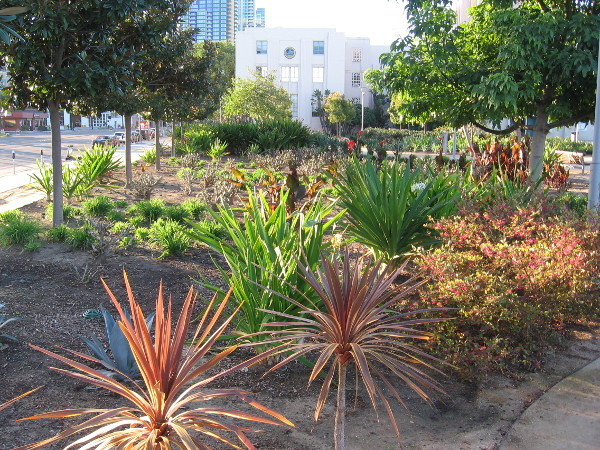 Another morning. Early sunlight illuminated the beautiful garden on the north side of Waterfront Park.