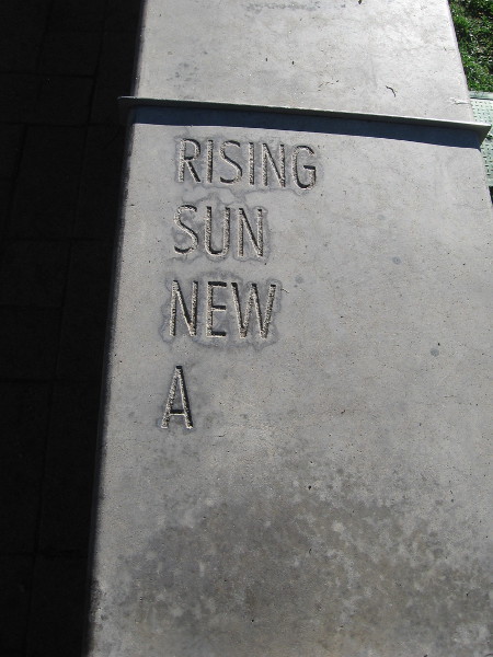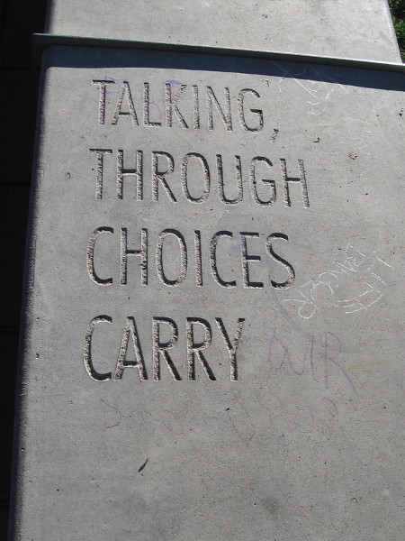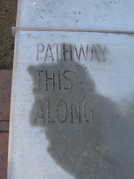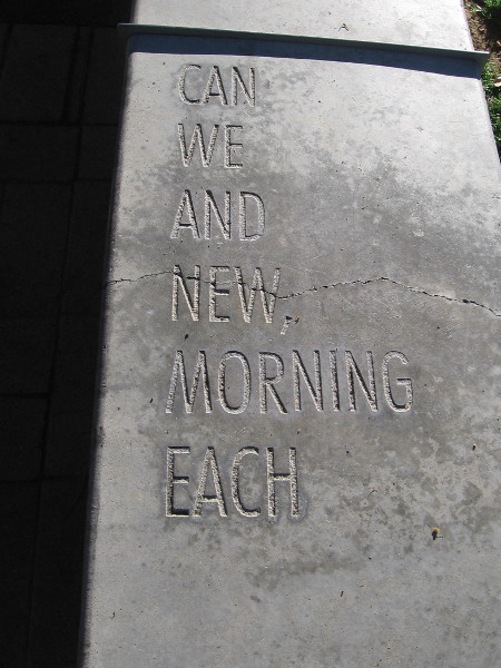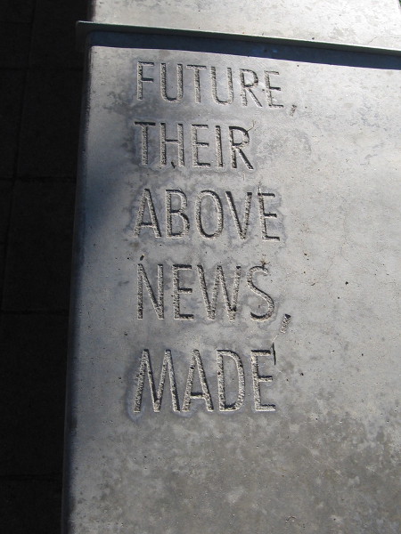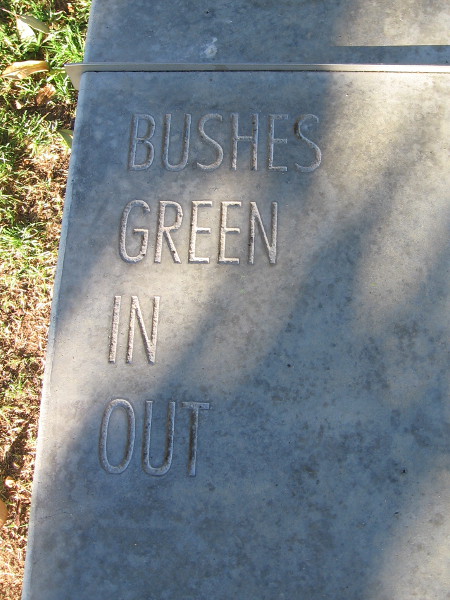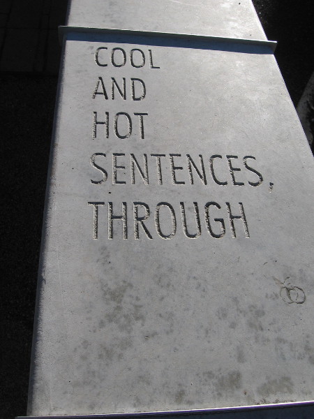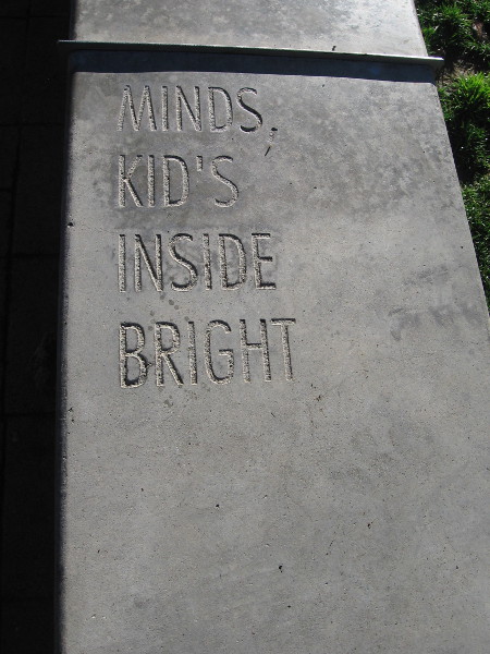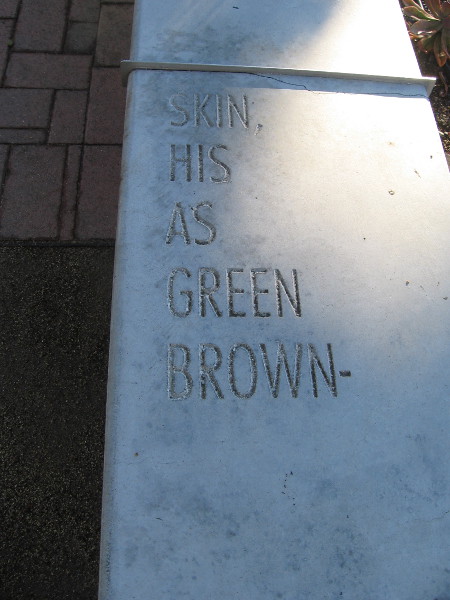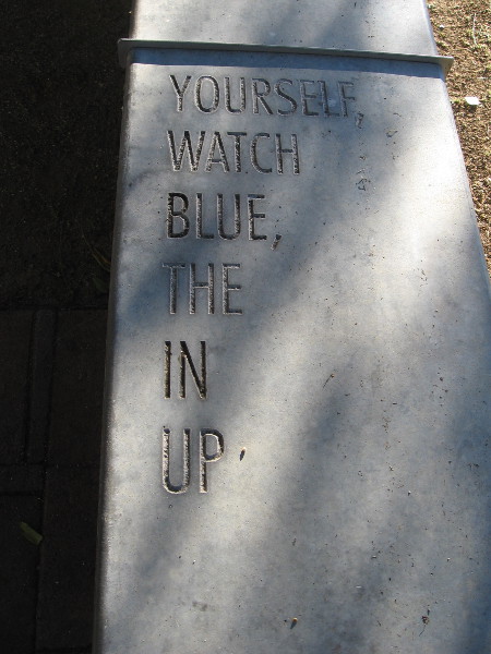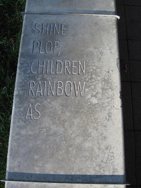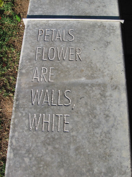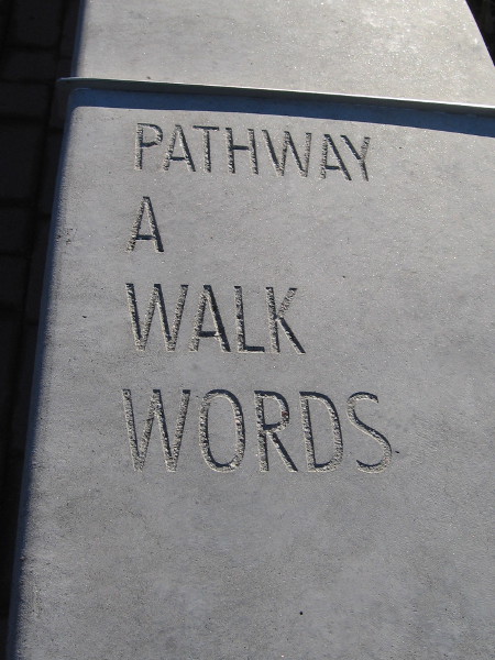 FOLLOWING THE WORDS is poetry inscribed along the top of a low concrete wall. The wall stretches between The New Children’s Museum and their garden and playground.