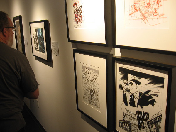 Today I enjoyed the big opening of the exhibition, which can be viewed in one room of the Federal Building in Balboa Park, future home of the Comic-Con Museum. Lots of other excited people were in attendance. After listening to a few words by those who are shaping the museum’s future, we all headed into the temporary gallery.