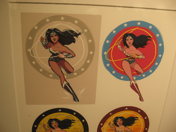 My photos provide a hint of what you’ll find. It’s a bit like the Art of Comic-Con exhibition several years ago at the San Diego Central Library, but the emphasis this time is on original art used for the covers of Comic-Con souvenir program books. You’ll see everything from thumbnail sketches to pencil and ink art to stunning colored finished pieces.