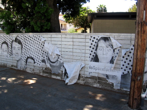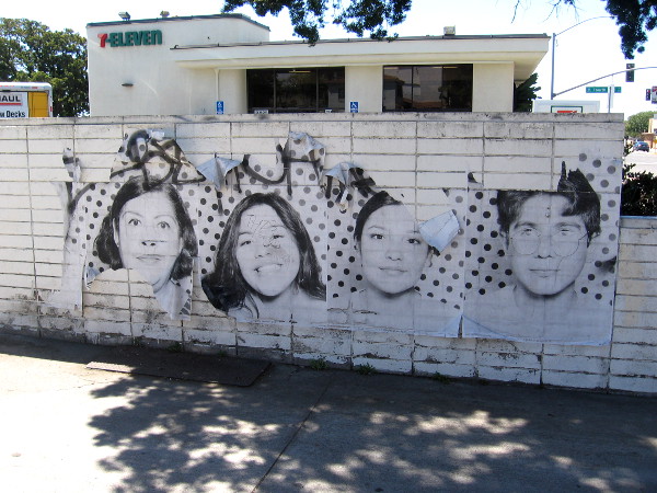 Last weekend, as I walked down H Street east of Fourth Avenue, my eyes were surprised to see a row of large, smiling faces in an alley. They looked out at the world from a long, low wall. I turned into the alley to have a closer look.
