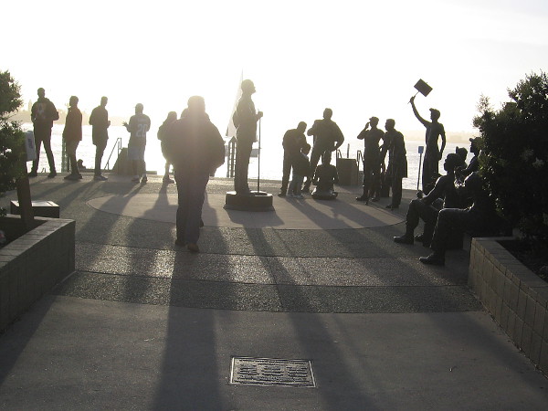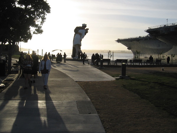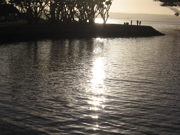 Walking along the Embarcadero, camera in hand, I gazed out toward San Diego Bay and the descending sun. Occasionally I paused to frame long shadows, glowing clouds, silhouettes and bright reflections on the water.
