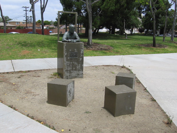 Yesterday I walked around the Chula Vista Library’s big Civic Center Branch. I took a look at a beautiful sculpture outside, saw an El Camino Real bell and bronze bust in nearby Friendship Park, then entered the building’s front entrance to check out more art and local history. I particularly enjoyed looking about the library’s unique Chula Vista Heritage Museum.