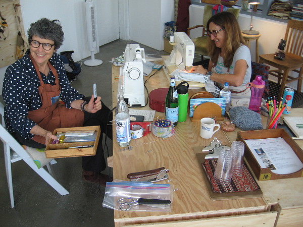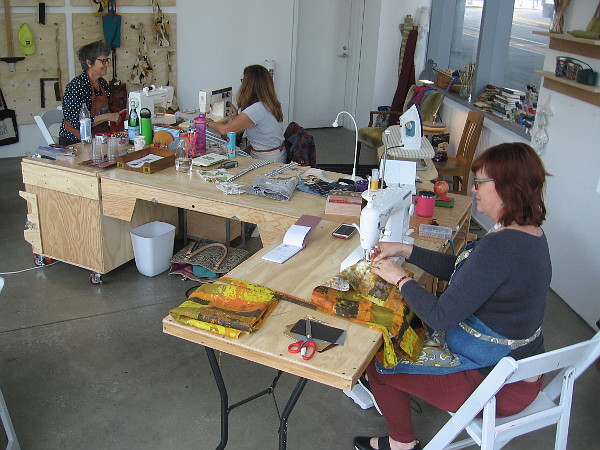 As I walked into the gallery, the artists were sewing bags, and smiling and enjoying themselves thoroughly. They gave me a friendly welcome!