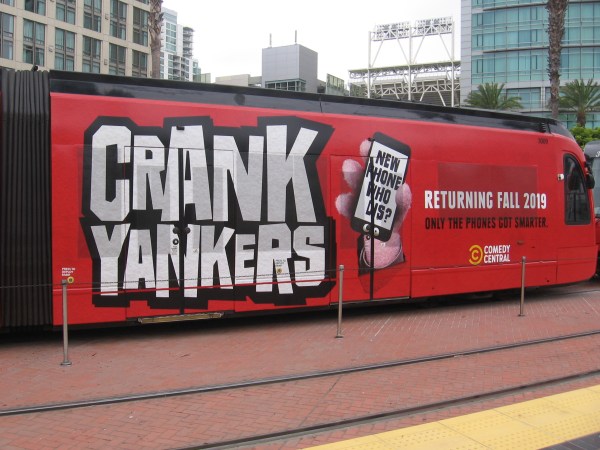 Yet another trolley wrap has debuted for 2019 San Diego Comic-Con! This one promotes Crank Yankers, which is being revived this fall on Comedy Central for its fifth season. Sadly, it seems only the phones got smarter…