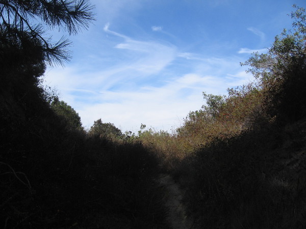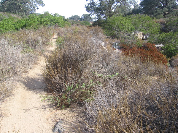 I started from the trailhead at the northeast end of Del Mar Scenic Parkway and, watching for rattlesnakes, climbed north along the Mar Scenic Trail to the DAR Trail.