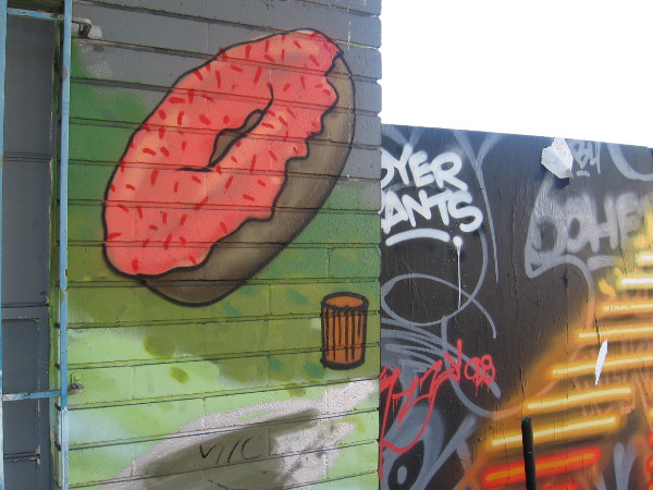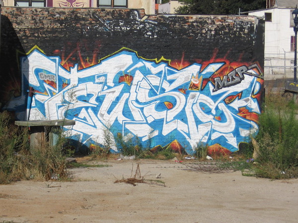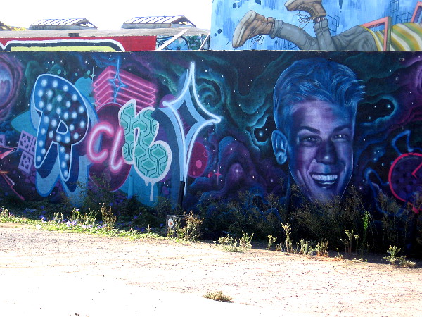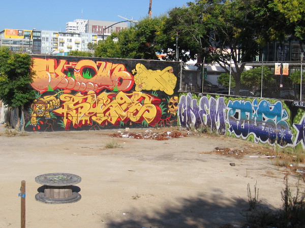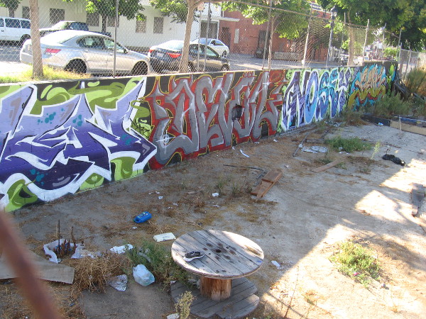 I took photos of a some colorful new murals. I also aimed my camera through a chain-link fence at spray painted graffiti-style art on the walls of SILO, which has replaced previous artwork. I noticed a lot of litter and weeds inside the SILO venue. Perhaps it hasn’t been used recently.