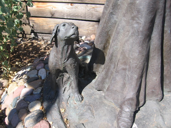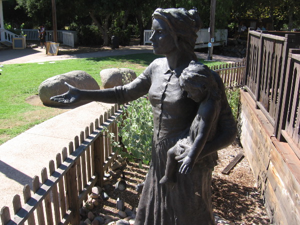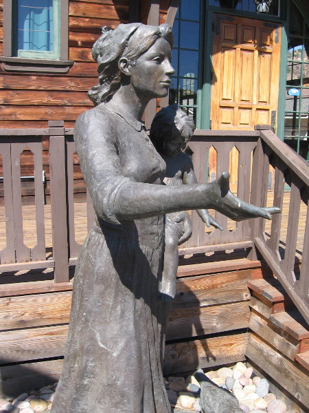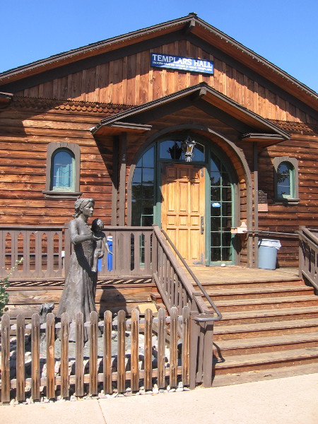 Last weekend I walked all around Old Poway Park. During my visit I took a look at the park’s many historic structures and interesting sights. When I approached the front of the 1886 Templars Hall, I noticed a large bronze sculpture standing near the foot of the front steps.