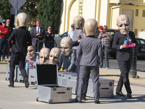 Finally, a production titled Peregrinus was ready to begin. The actors marched across the street in a very businesslike way, as you can see in my photos.