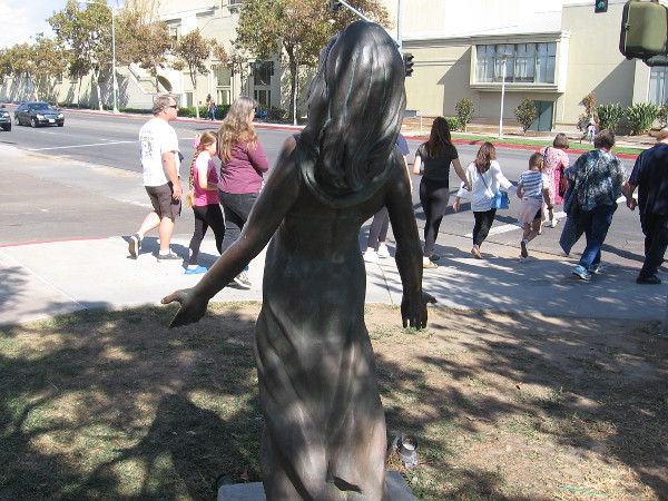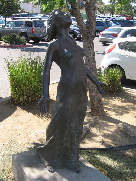 Two female bronze sculptures welcome visitors to the Plaza Civic Center shopping mall in Escondido. I saw them yesterday as I walked to the California Center for the Arts. The sculptures can be found on North Escondido Boulevard, directly across from the regional cultural complex.