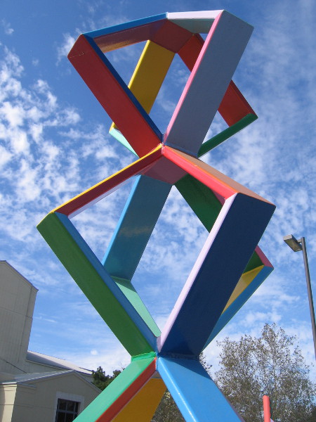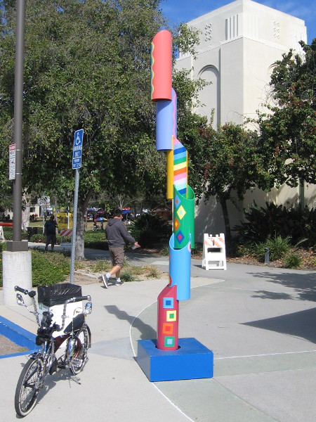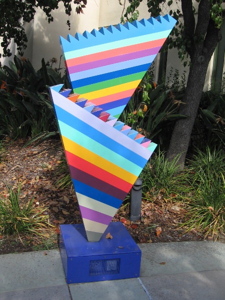 The bright, colorful Circle of Music sculptures were designed by artists Sandra Rowe and Nancy Mooslin. They stand beside the small parking lot directly west of the Escondido City Hall, east of the California Center for the Arts. Approach each sculpture and you’ll hear the unique music that was composed by Steven Stucky.