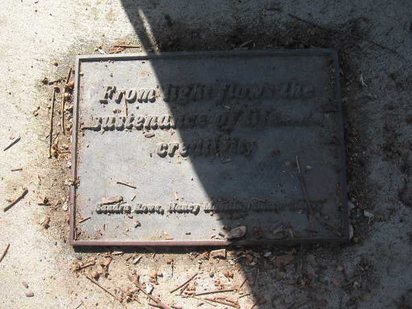 A nearby plaque reads: From light flows the sustenance of life…creativity.