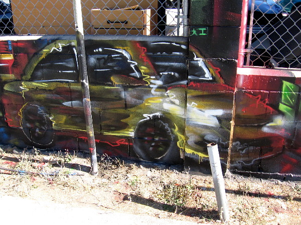 Meanwhile, a large mural in the alley next to 7-Eleven was just getting started by GMONIK. It will be the third inspiring piece of art on that wall. I’ll swing by at some point in the future and take a photo of the completed work.